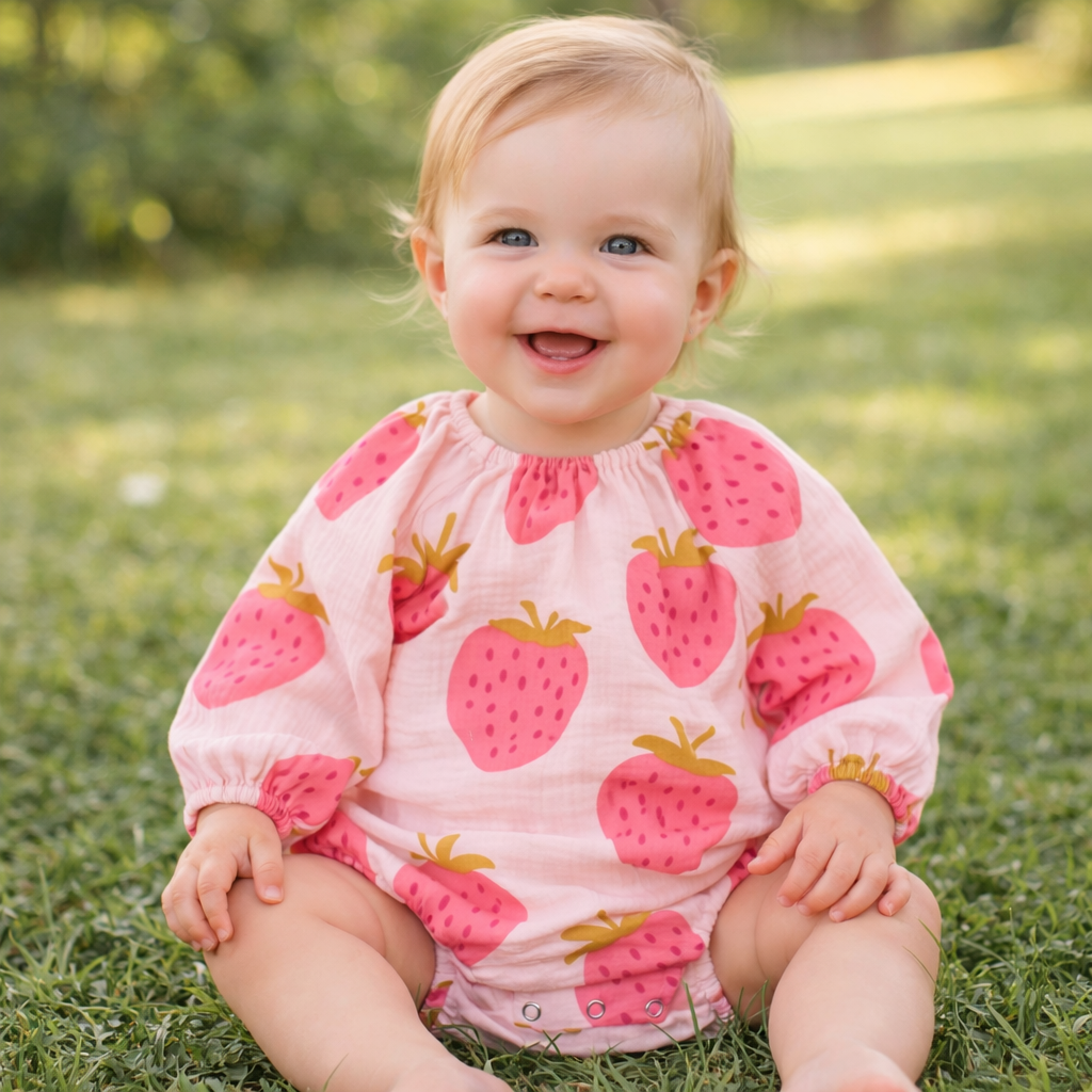 Marleen Baby Romper, Musselin Strawberries